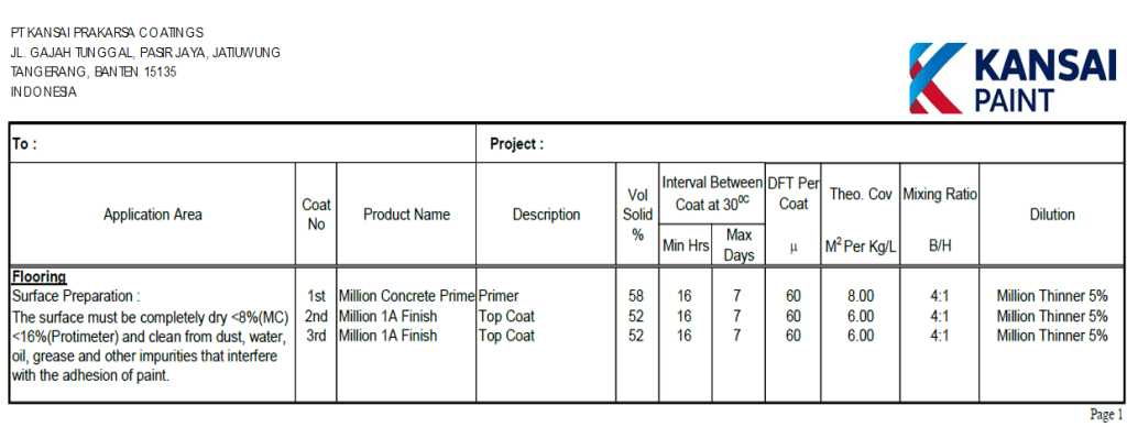Maintenance: Rencana perawatan untuk memastikan cat dalam kondisi baik selama masa pakai, termasuk pembersihan dan perikan jika diperlukan.